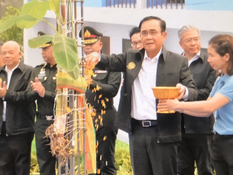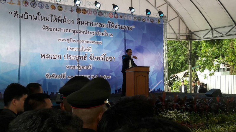 นายกฯ เป็นประธานในพิธียกเสาเอกชุมชนประชาร่วมใจ 2 โดยมี นายยุทธนา หยิมการุณ อธิบดีกรมธนารักษ์ เข้าร่วมพิธี ตามโครงการ “คืนบ้านใหม่ให้พี่น้อง คืนสายคลองให้ชุมชน”
