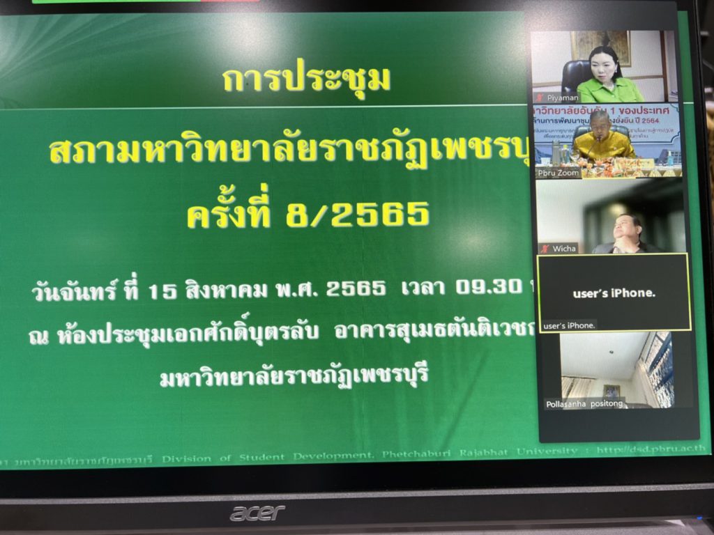 ประชุมสภามหาวิทยาลัยราชภัฏเพชรบุรี ครั้งที่8/2565 วันจันทร์ที่15 สค 2565 ณ ห้องประชุมเอกศักดิ์บุตรลับ อาคารสุเมธตันติเวชกุล