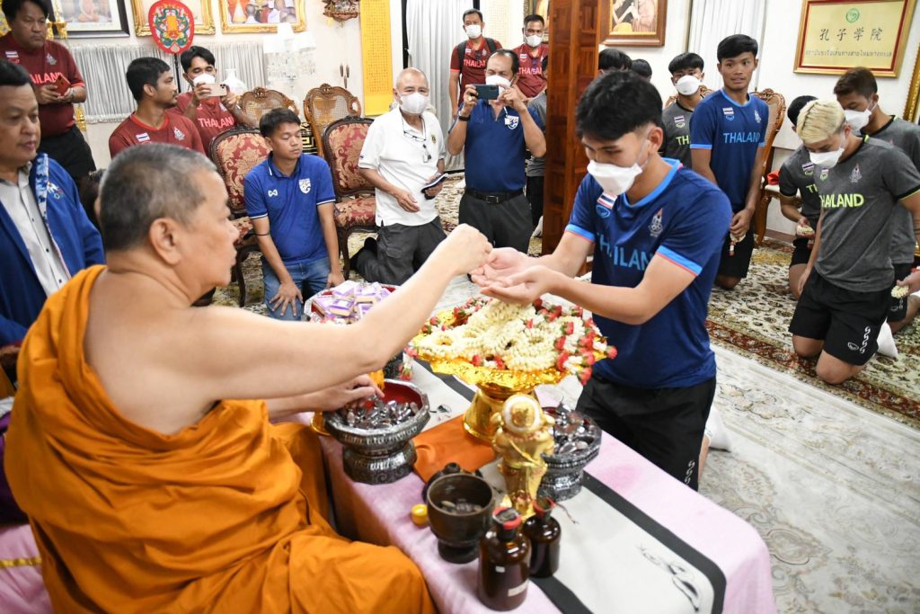 สำหรับทีมชาติไทย U22 ก่อนหน้านี้ ได้เข้าแคมป์ฝึกซ้อมที่พัฒนา สปอร์ต รีสอร์ท จังหวัดชลบุรี มาอย่างต่อเนื่อง ตลอด 1 สัปดาห์ และได้มาสักการะขอพรสมเด็จธงชัย เพื่อเป็นศิริมงคลก่อนเดินทางไปทำการแข่งขัน