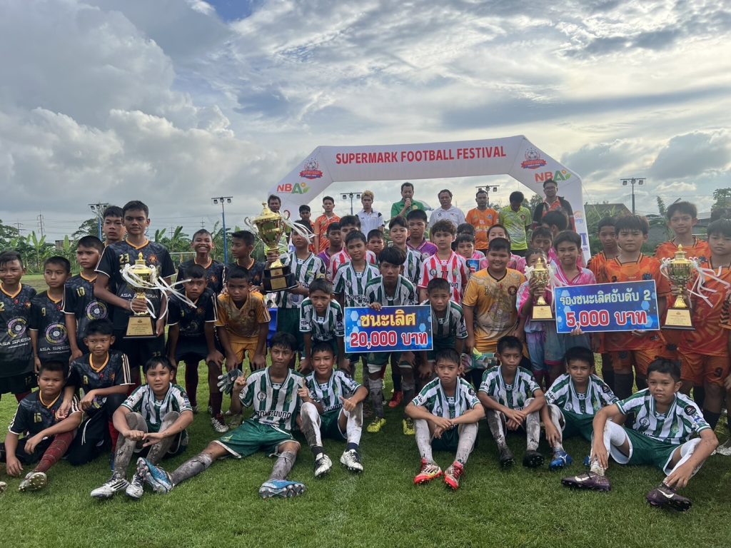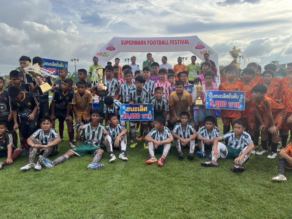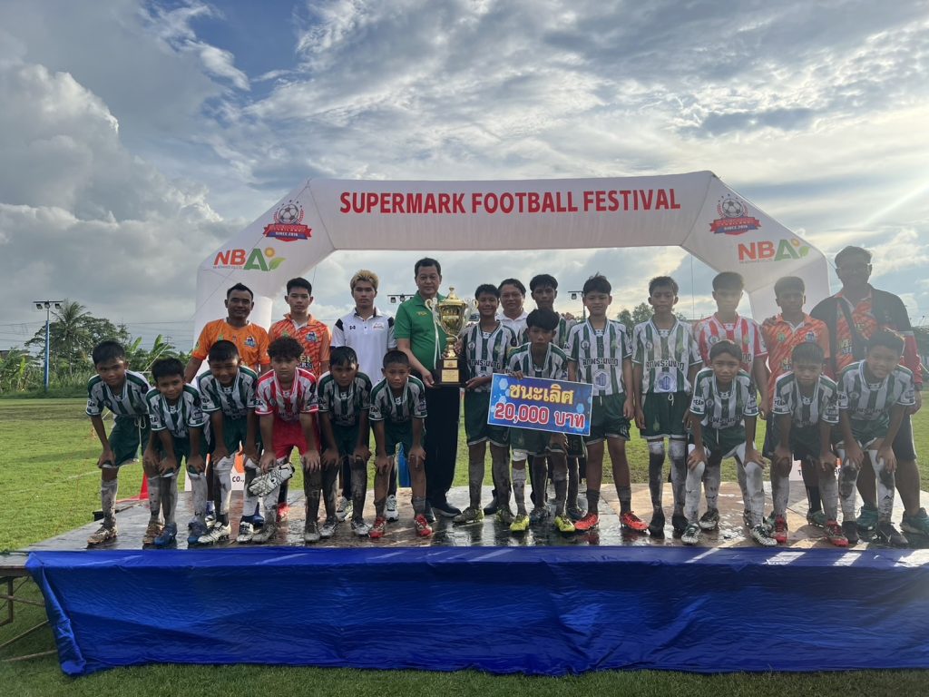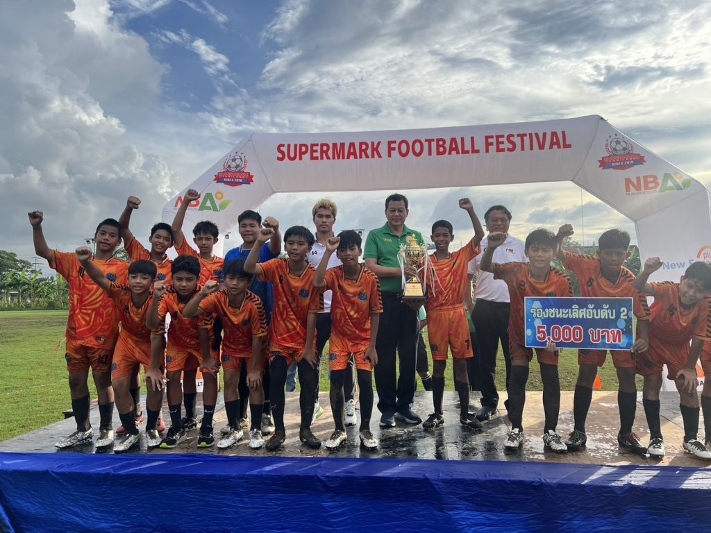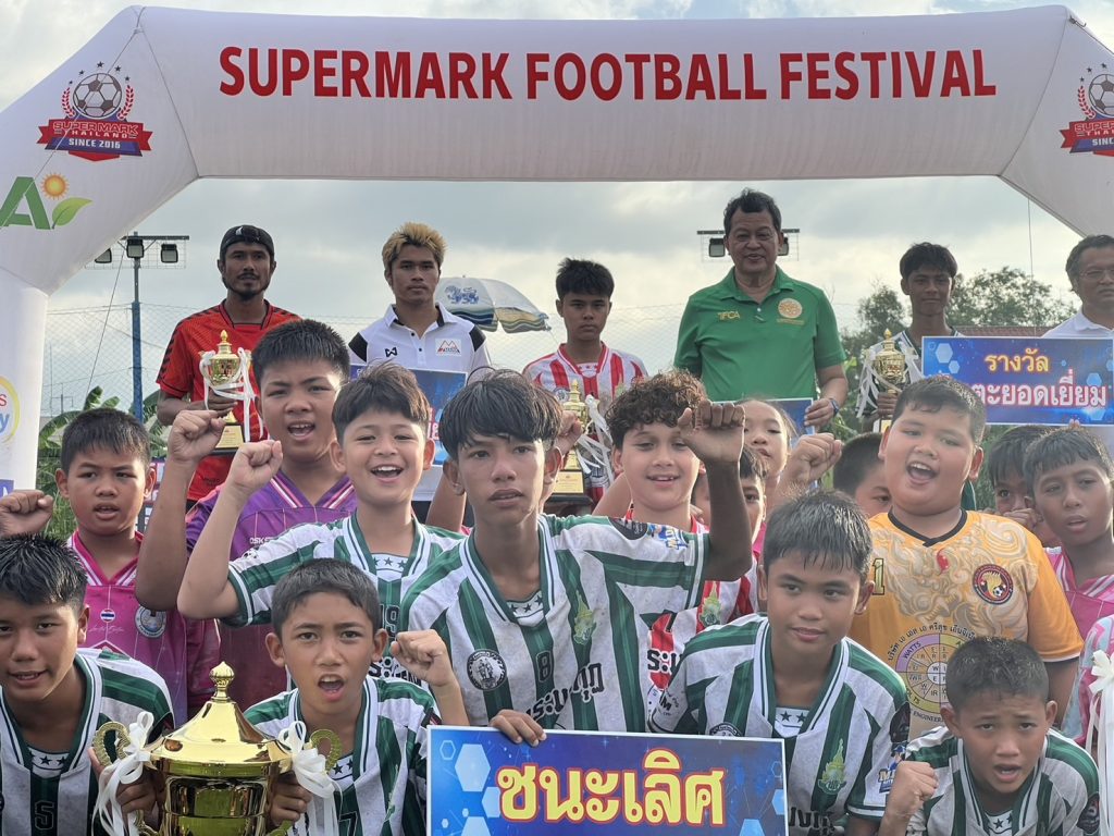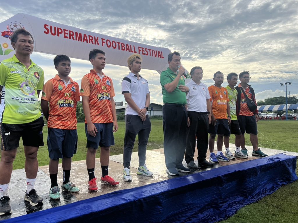 นายยุทธนา หยิมการุณ นายกสมาคมผู้ฝึกสอนกีฬาฟุตบอลแห่งประเทศไทย มาร่วมงาน และมอบถ้วยรางวัล ฟุตบอลรายการ Super Mark Super Youth Cup U12 ฟุตบอล 7คน