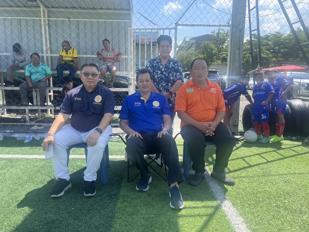 นายยุทธนา หยิมการุณ นายกสมาคมผู้ฝึกสอนกีฬาฟุตบอลแห่งประเทศไทย นายสมชาย โตทรัพย์ เลขาธิการสมาคมฯ ดร.ชัชวาลย์ ชาญสมุทร ที่ปรึกษาสมาคม ร่วมชมการแข่งขันฟุตบอลเยาวชน รุ่น 10