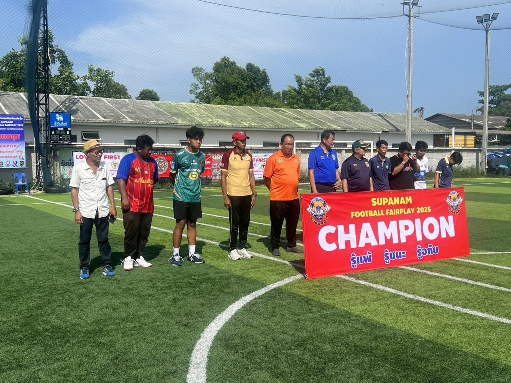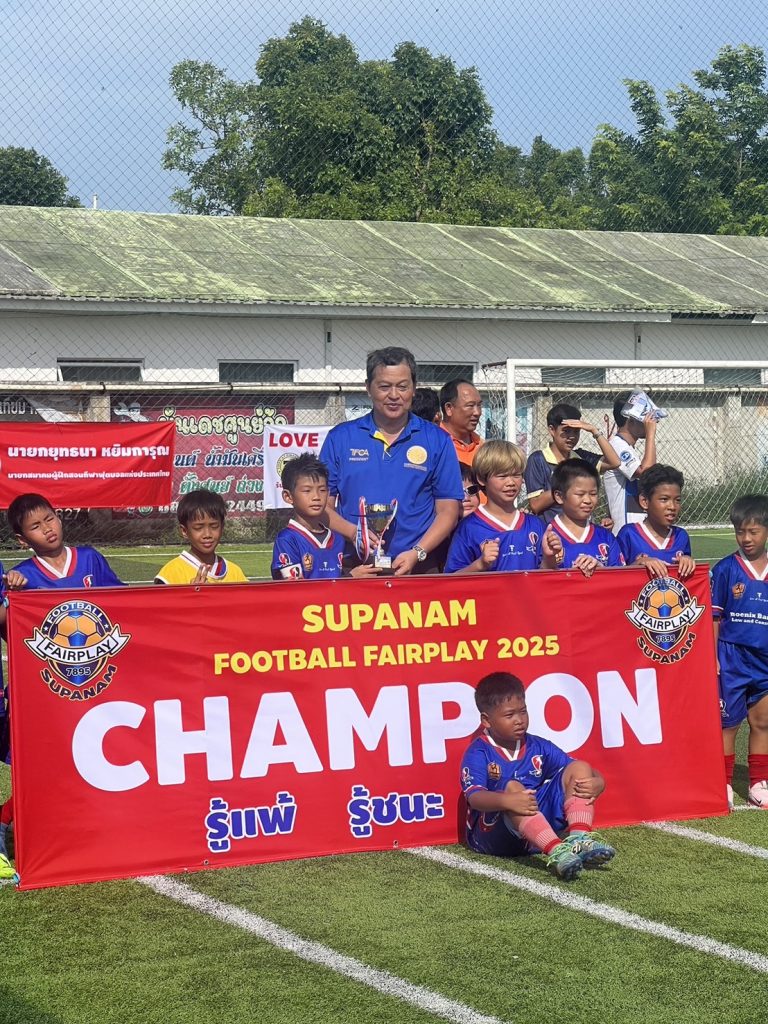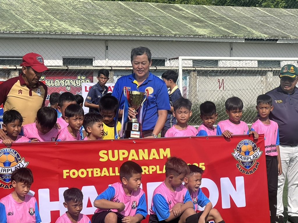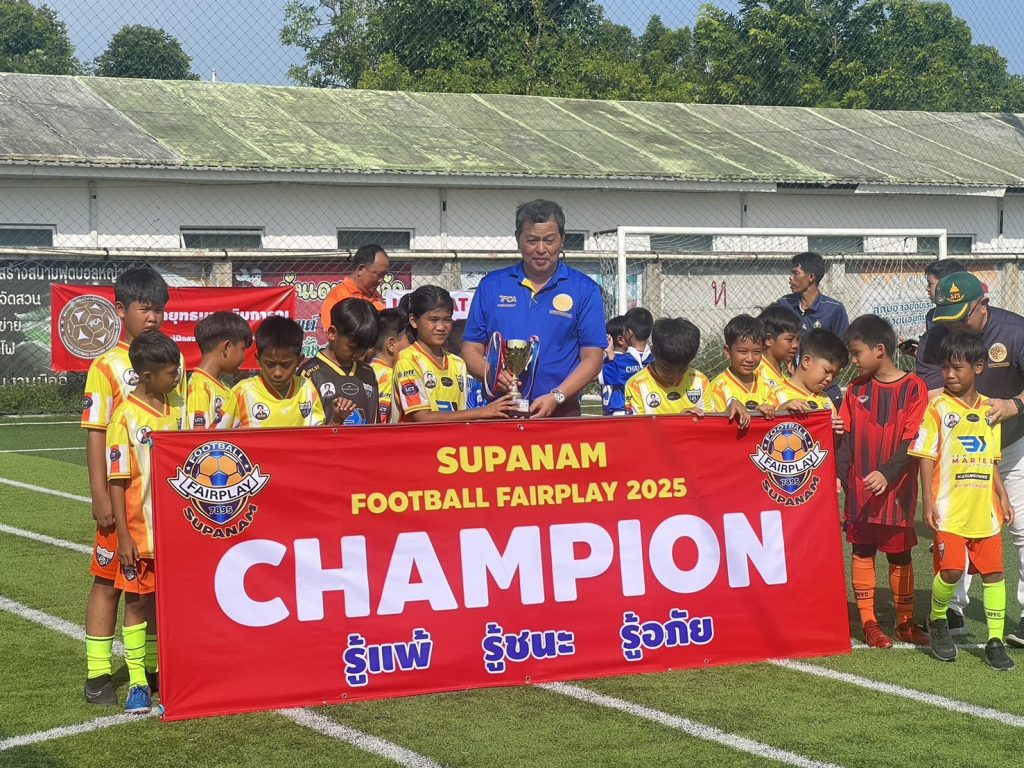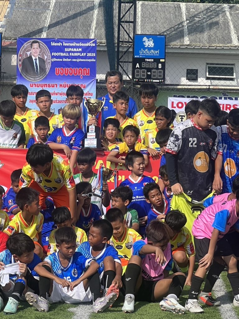 วันเสาร์ที่ 7 มิถุนายน 2568 นายยุทธนา หยิมการุณ นายกสมาคมผู้ฝึกสอนกีฬาฟุตบอลแห่งประเทศไทย นายสมชาย โตทรัพย์ เลขาธิการสมาคมฯ ดร.ชัชวาลย์ ชาญสมุทร ที่ปรึกษาสมาคม ร่วมชมการแข่งขันฟุตบอลเยาวชน รุ่น 10 และ 14 ปี ฟุตบอล 8 คน 4 เส้า Supanam Football Fairplay 2025 เป็นประธานกล่าวเปิด-ปิด การแข่งขัน และมอบถ้วยรางวัลเกียรติยศให้ทีมต่างๆ พร้อมสนับสนุนค่าใช้จ่ายในการจัดการแข่งขัน ณ สนามฟุตบอล 984 Stadium บางขุนเทียน กรุงเทพฯ#สมาคมผู้ฝึกสอนกีฬาฟุตบอลแห่งประเทศไทย