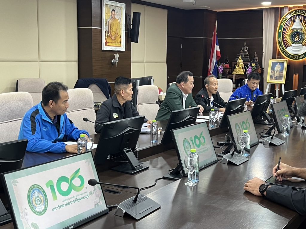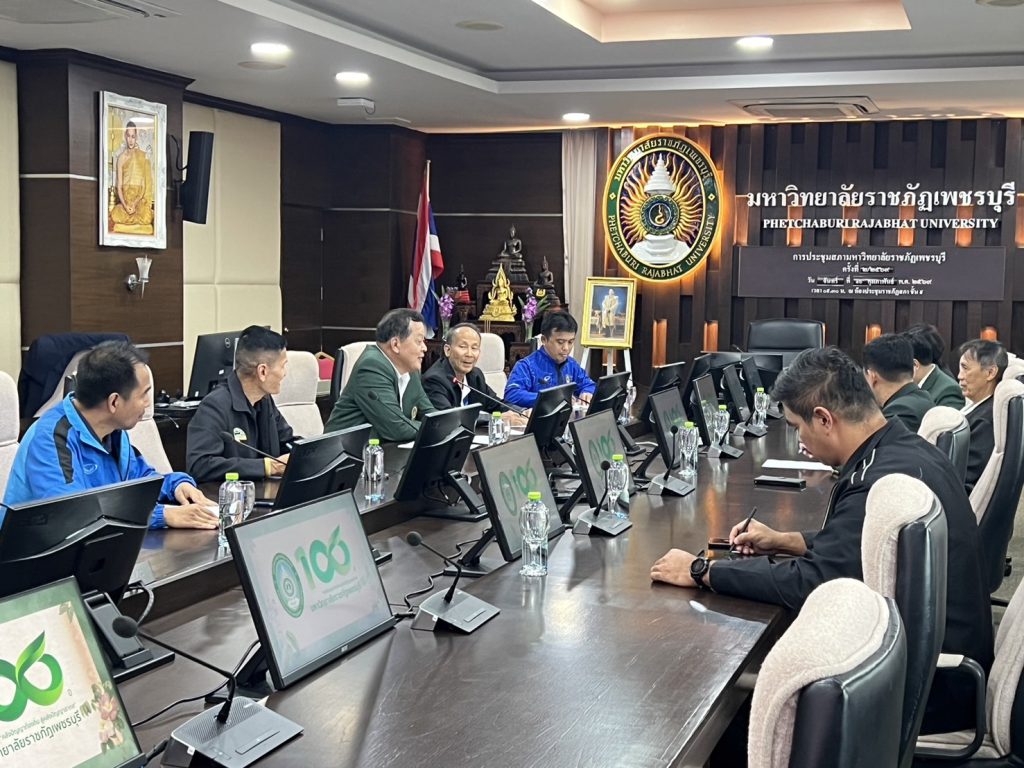 วันจันทร์ที่16กพ 2569 เวลา13.30น ประชุมโครงการ ฟุตบอล หาทุนการศึกษา เพื่อมอบให้กองทุนการศึกษา ให้นักศึกษา ของมหาวิทยาลัยราชภัฏเพชรบุรี สมาคมชาวเพชรบุรี ประสานผู้อํานวยการโรงเรียนหมอนทองวิทยา จะมีการแข่งขันการกุศล ทีมฟุตบอลราชภัฏเพชรบุรี พบ ทีมฟุตบอลโรงเรียนหมอนทอง และมีทีมผู้บริหารจังหวัดเพชรบุรี พบ ทีมภาคเอกชนในจังหวัดเพชรบุรี ในวันอังคารที่31มีนาคม2569 ช่วงเวลา15.00-21.00น ณ สนามฟุตบอลจุลานนท์ กีฬาสถาน มหาวิทยาลัยราชภัฏเพชรบุรี ประชุม ณ ห้องประชุมราชภัฏสภา ชั้น9 อาคารวิทยาภิรมย์