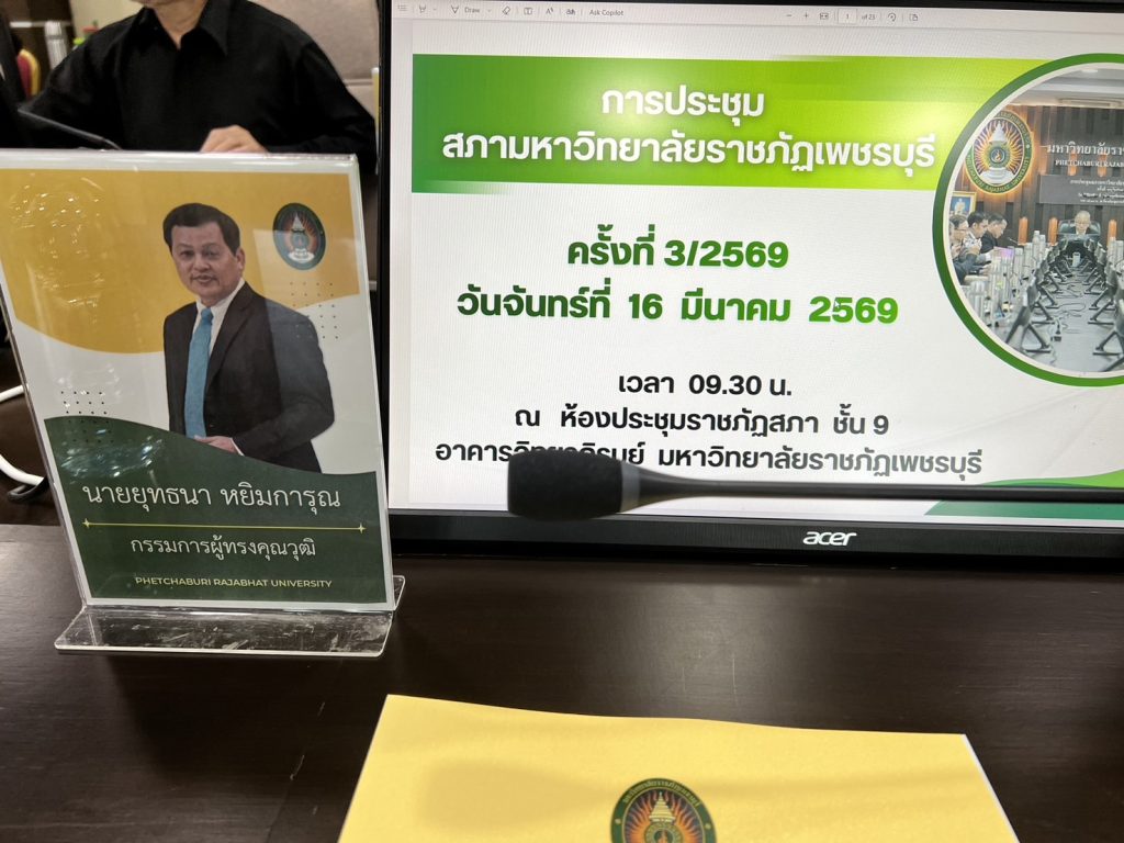 ประชุมสภามหาวิทยาลัยราชภัฏเพชรบุรี ครั้งที่3/2569 วันจันทร์ที่ 16 มีนาคม 2569 เวลา 09.30น ณ ห้องประชุมราชภัฏสภา ชั้น 9 อาคารวิทยาภิรมย์ มหาวิทยาลัยราชภัฏเพชรบุรี